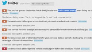 Other sites read your private messages. The project claims Twitter tracks users, even if they ask it not to. CNN’s app may collect your device fingerprint.