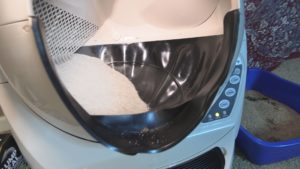 The Litter-Robot has a blue-light so you won’t stumble over it in the dark. It also comes with a few plastic bags to use in the waste bin. Litter-Robot sent me a unit to try out and I’ve just introduced it to our cat Skinny. So far, she hasn’t seemed to interested in it but I’m hoping that will change soon. I’ll keep posting updates on the Litter-Robot here if you want to follow her progress.